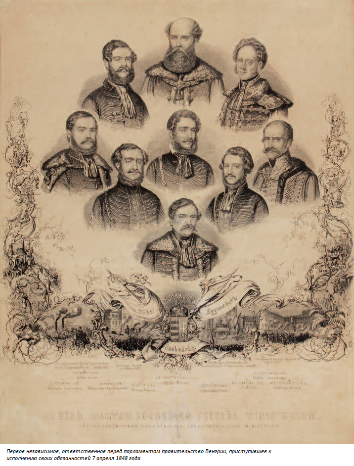 После вспыхнувших зимой и весной 1848 года европейских революций к власти пришла либеральная реформистская оппозиция. Под руководством графа Лайоша Баттяни сформировалось первое венгерское ответственное правительство, и сформулировавшие важнейшие завоевания буржуазного преобразования апрельские законы (освобождение крепостных, народное представительство, равенство перед законом, свобода печати, равенство вероисповеданий и т.д.) были утверждены Фердинандом V. Правительство Баттяни стремилось решать спорные вопросы путем переговоров с австрийским правительством, однако возможность для мирного соглашения из-за поражения европейских революций и развертывания отечественных национальных движений отсутствовала. В сентябре 1848 года с наступления войск подстрекаемого австрийским правительством хорватского бана Йеллачича в Венгрии началась Революция 1848–1849 годов. После отставки правительства Баттяни Лайош Баттяни был назначен председателем Совета министров, уполномоченным сформировать правительство, после его отставки исполнительной властью пользовался Комитет обороны Венгрии, избранный государственным собранием.